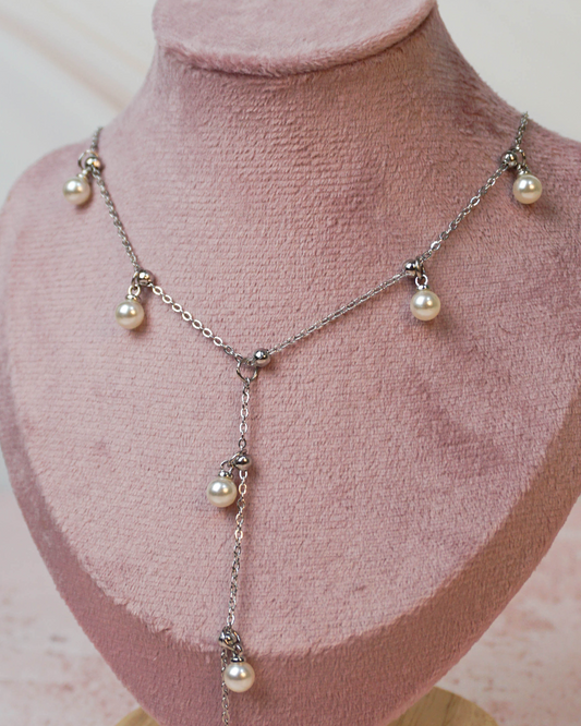 Corbatín perlas plateadas