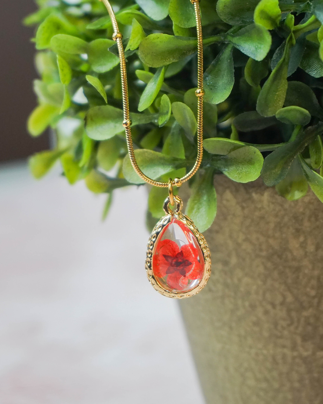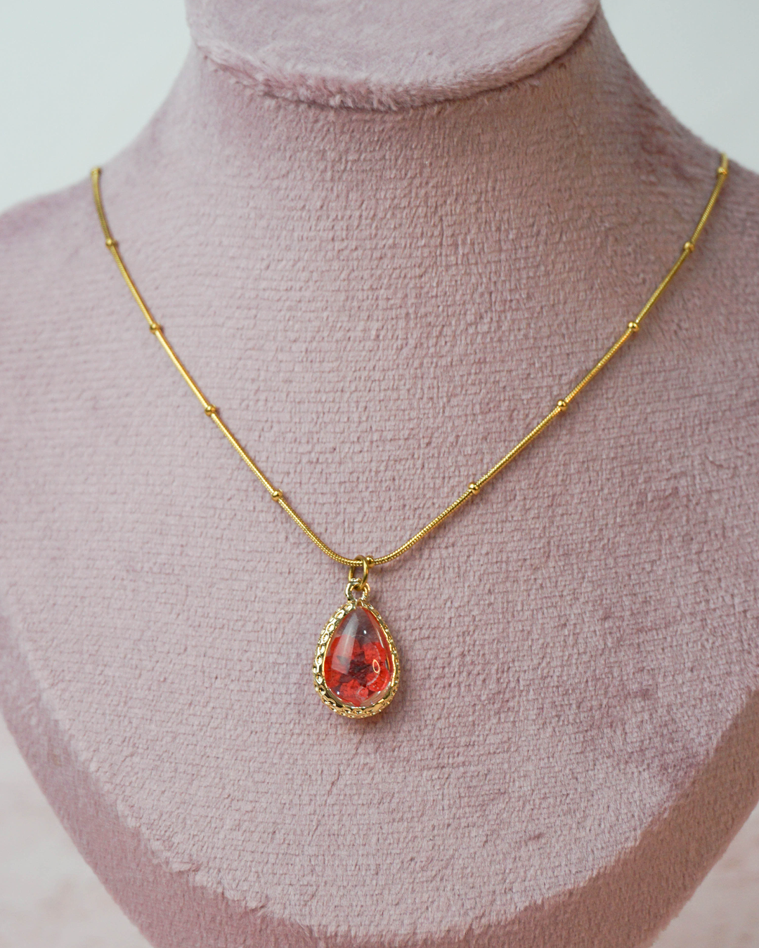 Collar Flor encapsulada rosa gota