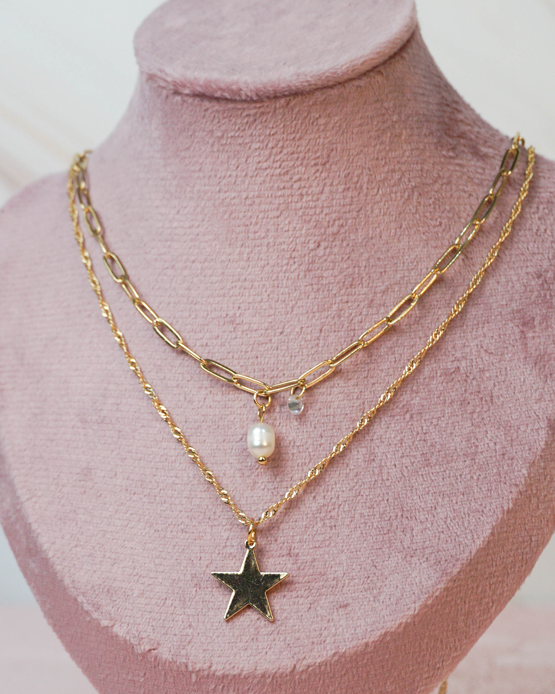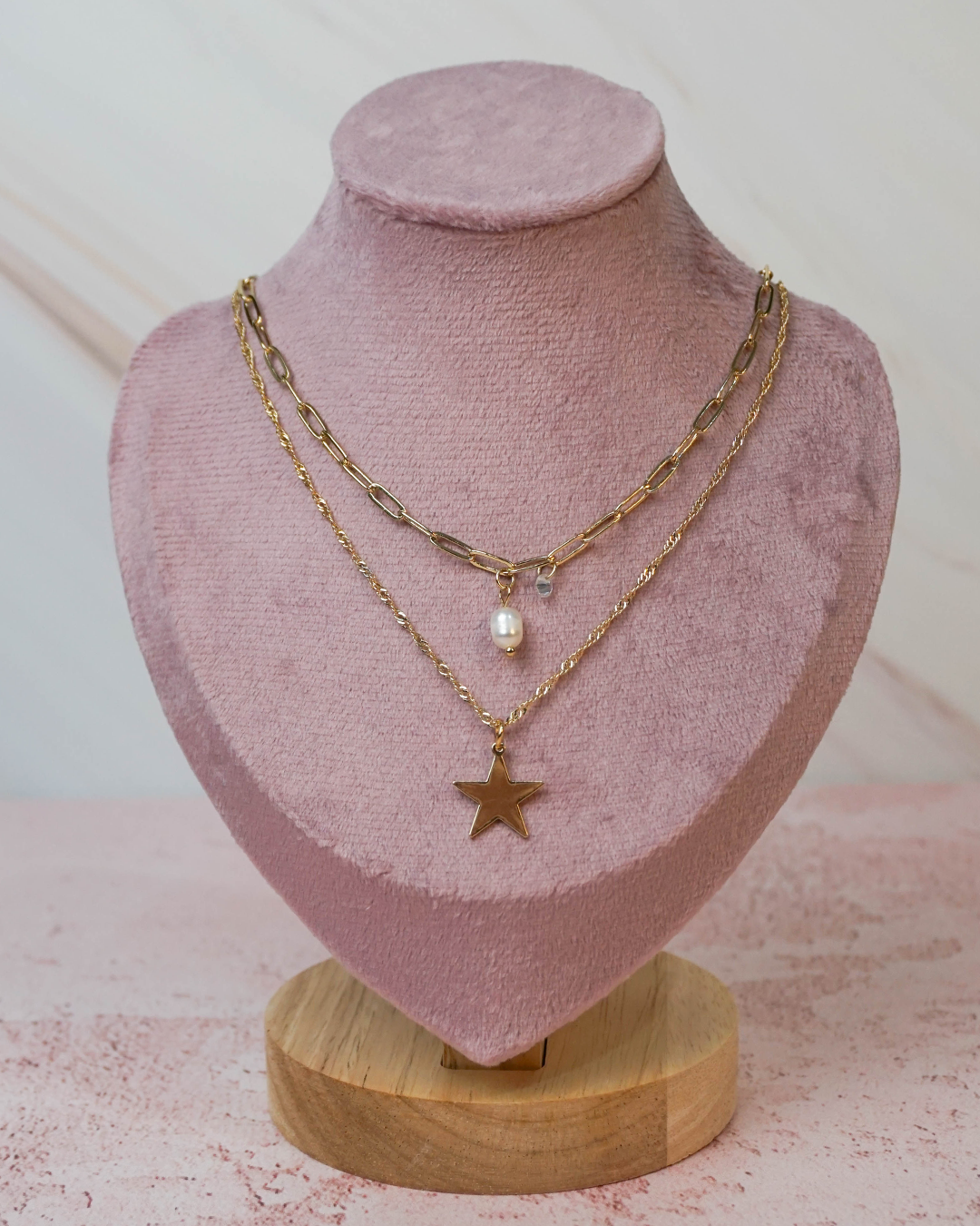 Collar doble, chapa de oro 18k